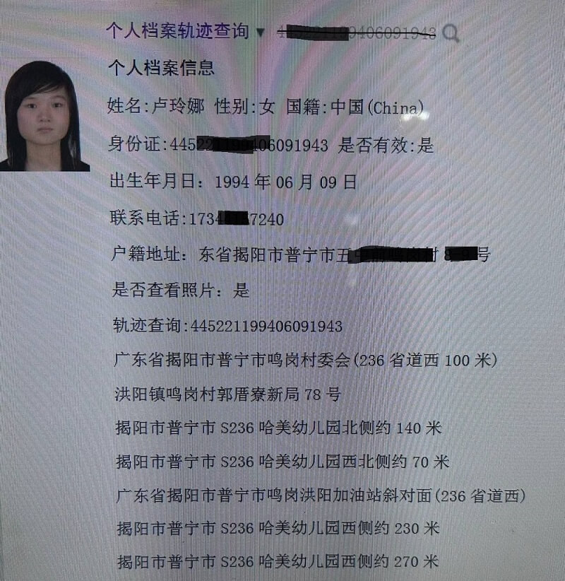 查询信息只限你本人阅读,不得在网络上传播!